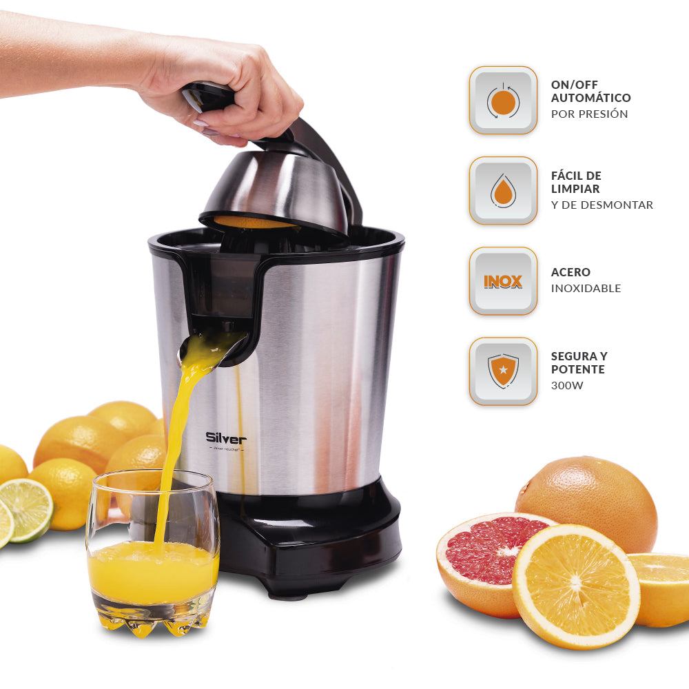 Este nuevo exprimidor cuenta con una palanca de presión, con ella conseguimos exprimir nuestras frutas al máximo, fácil y sencillo.