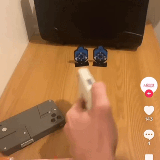 Esta Funda de iPhone contiene Doble cañón, lanza un dardo por cada disparo y puede ser recargado infinidad de veces.